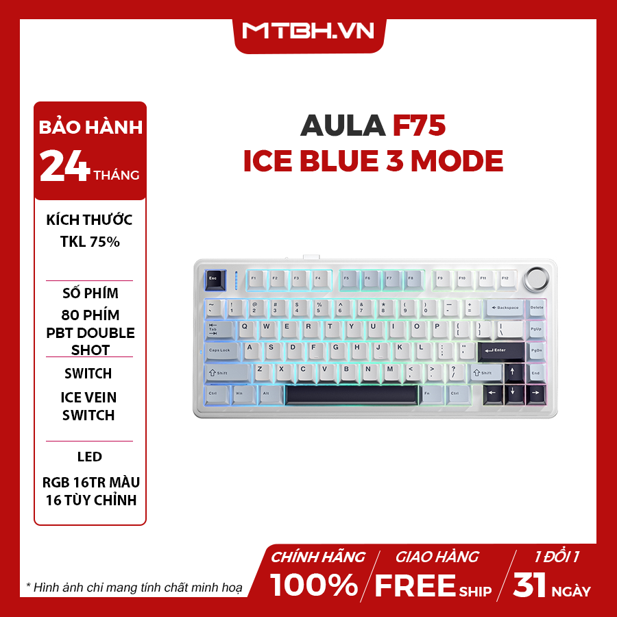 | THÔNG TIN CHUNG | AULA F75 BÀN PHÍM CƠ GAMING (Phiên bản Ice Blue/ Ice Vein switch) |