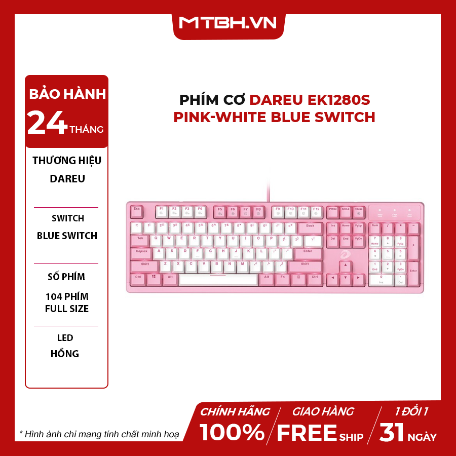 Bàn phím cơ Dareu EK1280s Pink White Blue Switch