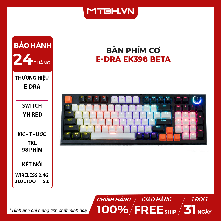 Bàn Phím Cơ E-dra EK398 Beta Red Switch (USB/ABS/Led Rainbow)