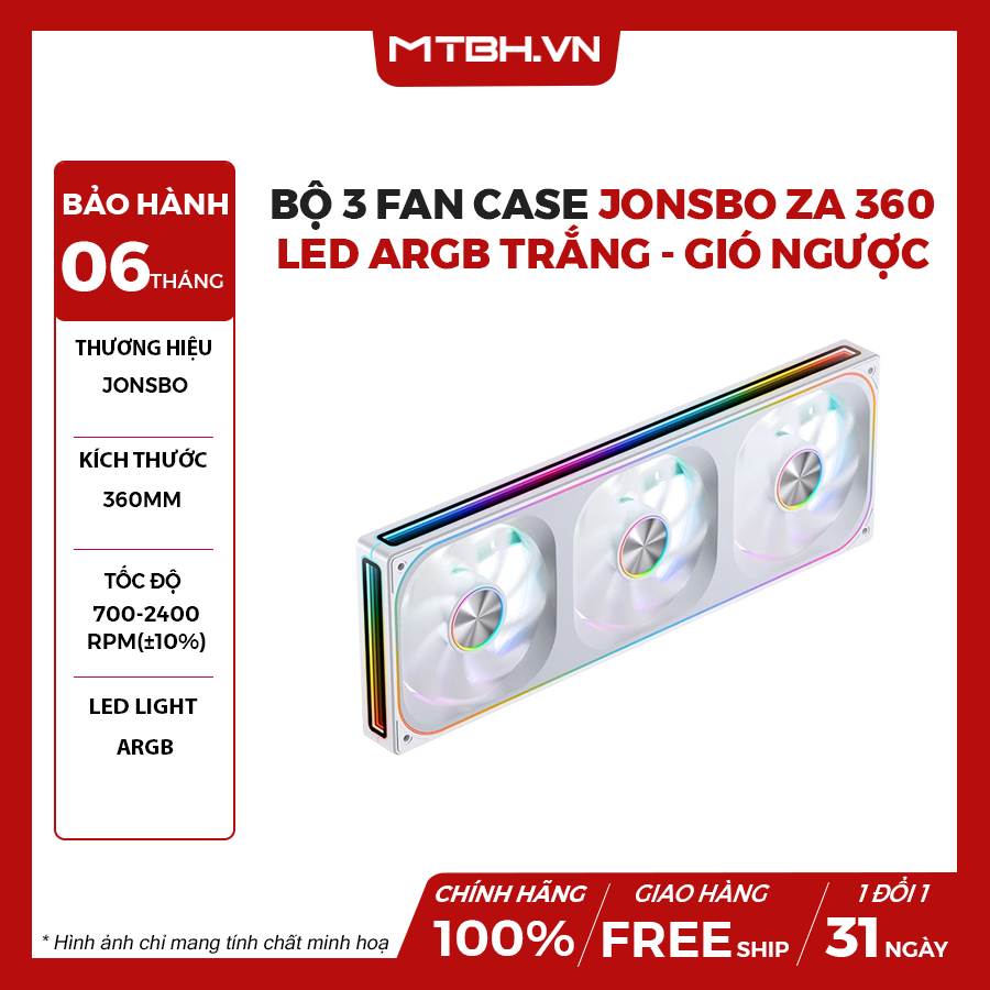 Với kích thước lớn 362mm x 123mm và tốc độ quay tối đa 2400 vòng/phút, Jonsbo ZA-360W/WR White cung cấp lưu lượng không khí lên đến 62,40 CFM. Điều này giúp làm mát hiệu quả CPU, GPU và toàn bộ case, đặc biệt phù hợp với các hệ thống PC gaming hoặc workstation hiệu năng cao.