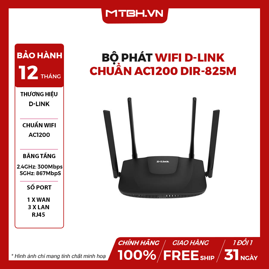 | Tên sản phẩm | Router WiFi 5 D-Link DIR-825M AC1200 Dual Band Gigabit |