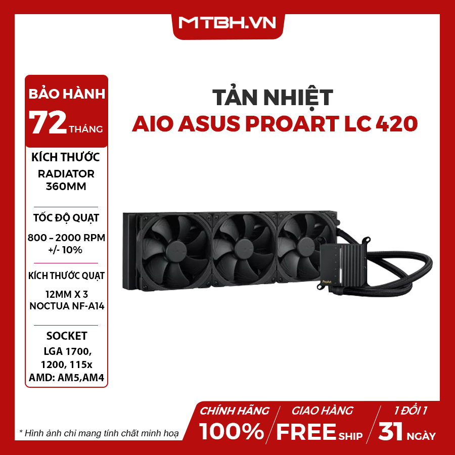 Để vượt qua những thách thức về nhiệt của CPU đa lõi mới nhất, ProArt LC 420 cung cấp quạt tản nhiệt Noctua NF-A14 công nghiệpPPC-2000PWM 140 mm mang lại hiệu suất cao và giảm thiểu tiếng ồn.