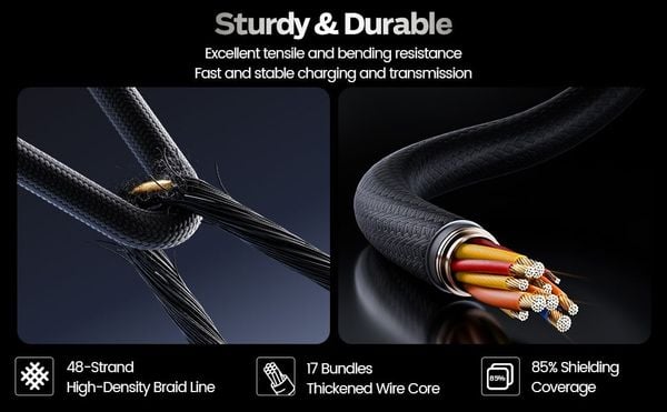 Vỏ ngoài chắc chắn, chống gãy gập, tăng độ bền và tuổi thọ sử dụng. Chiều dài 3.3ft (1m) vừa đủ để kết nối gọn gàng, không gây vướng víu.