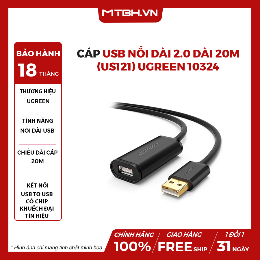 Cáp nối dài USB 2.0 Ugreen US121 10m 20m 30m chính hãng