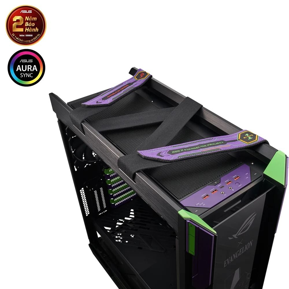Case máy tính ROG Strix Helios EVA Edition được làm bằng chất liệu hợp kim nhôm cao cấp. Các linh kiện máy tính được lắp đặt vào case luôn được bảo vệ một cách an toàn nhất. Tông màu đen bao phủ toát lên cá tính mạnh mẽ kết hợp cùng hệ thống LED RGB được tích hợp sẵn ở mặt trước cực ấn tượng. Bạn có thể dễ dàng điều chỉnh các hiệu ứng ánh sáng RGB nhờ vào bảng điều khiển ở phía trước hoặc phần mềm Aura Sync.