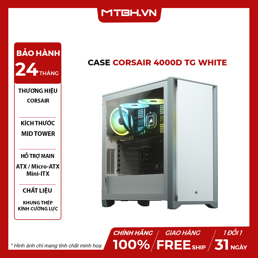Thông số kỹ thuật chi tiết Vỏ Case Corsair 4000D TG White (Mid Tower/Màu Trắng)