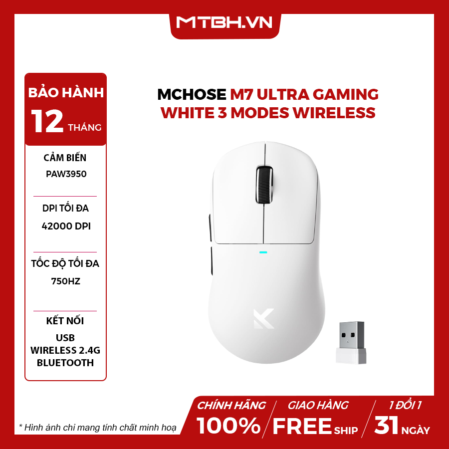 Chuột sử dụng công nghệ không dây TOPSPEED với khả năng kết nối 3 chế độ, mang lại độ trễ không dây cực thấp và phản hồi gần như tức thì, phù hợp cho game thủ và người dùng đam mê hiệu năng cao. Ngoài ra, M7 còn cung cấp hai chế độ hoạt động riêng biệt là Game-Enhancement Mode và eSports Mode, cho phép tối ưu hiệu suất linh hoạt theo từng nhu cầu sử dụng.