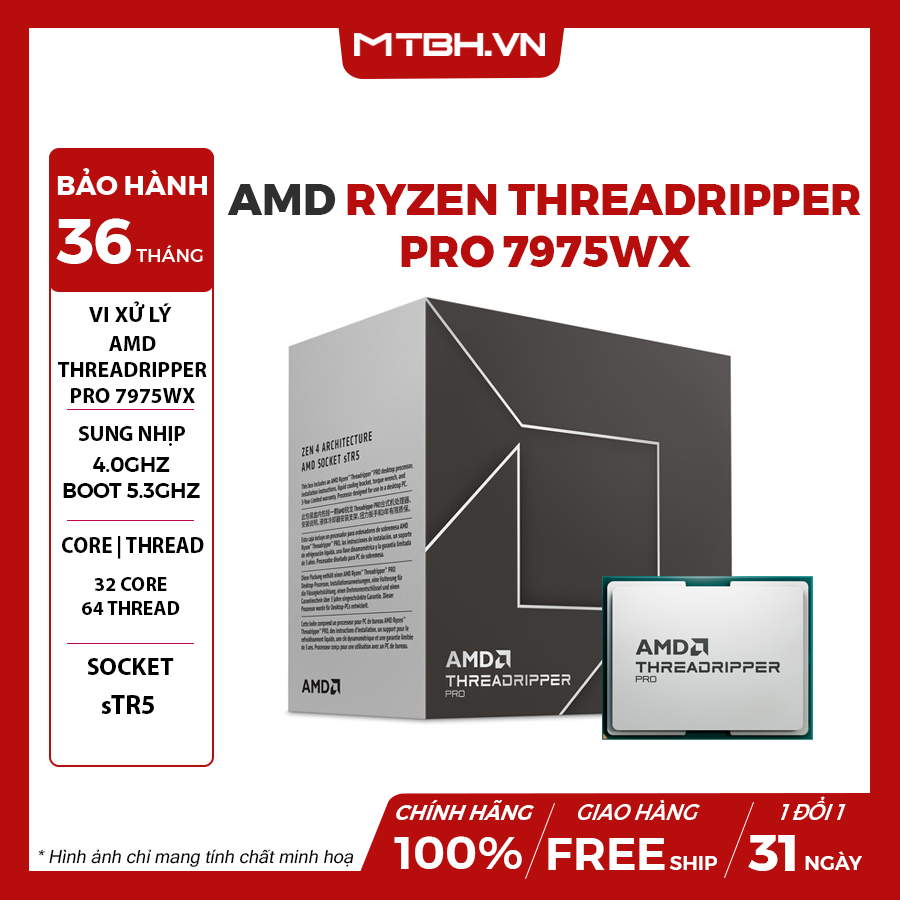 GIỚI THIỆU CPU AMD RYZEN THREADRIPPER PRO 7975WX (4.0GHZ UP TO 5.3GHZ | 32 CORES/ 64 THREADS | 128MB CACHE| PCIE 5.0)