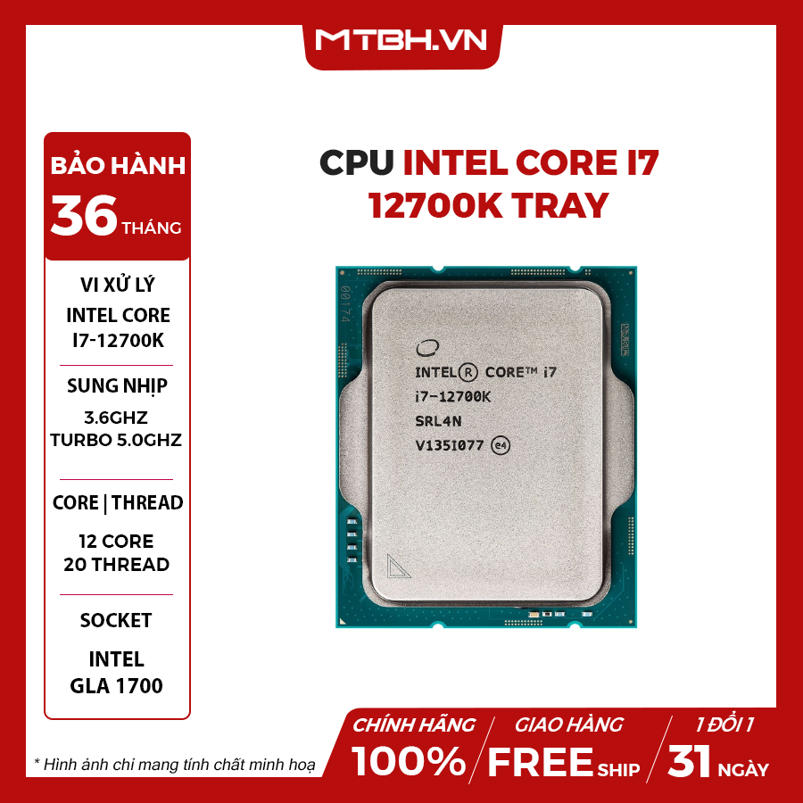 CPU Intel Core i7-12700K sử dụng Socket LGA 1700 hoàn toàn mới và có thể chạy được trên các bo mạch chủ H610, B660, H670 & Z690. Tuy nhiên bạn nên sử dụng chung với các bo mạch chủ tối thiểu từ B660 để đạt được hiệu năng & độ ổn định cao nhất.