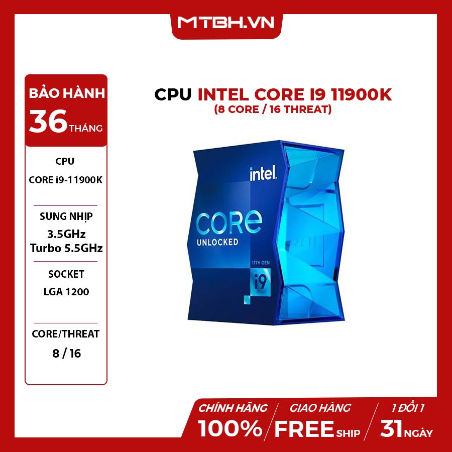Thông số kỹ thuật chi tiết CPU Intel Core i9-11900K (3.5GHz turbo up to 5.3Ghz, 8 nhân 16 luồng, 16MB Cache, 125W) - Socket Intel LGA 1200