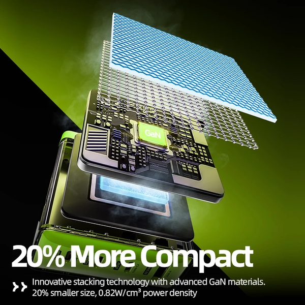 - Sử dụng công nghệ GaN thế hệ mới nhất, mang đến kích thước nhỏ gọn cùng với đó là khả năng tản nhiệt tối ưu.