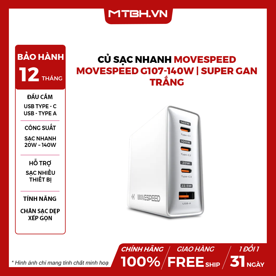 Củ sạc nhanh Movespeed G107 140W | Super GaN (Hàng chính hãng)