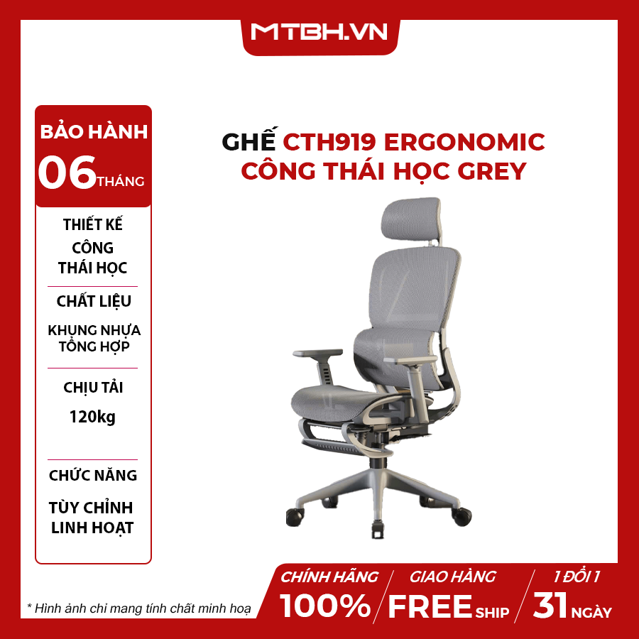 Ghế Công Thái Học CTH-919 | Màu xám - Sản phẩm ghế cực kỳ thoải mái.