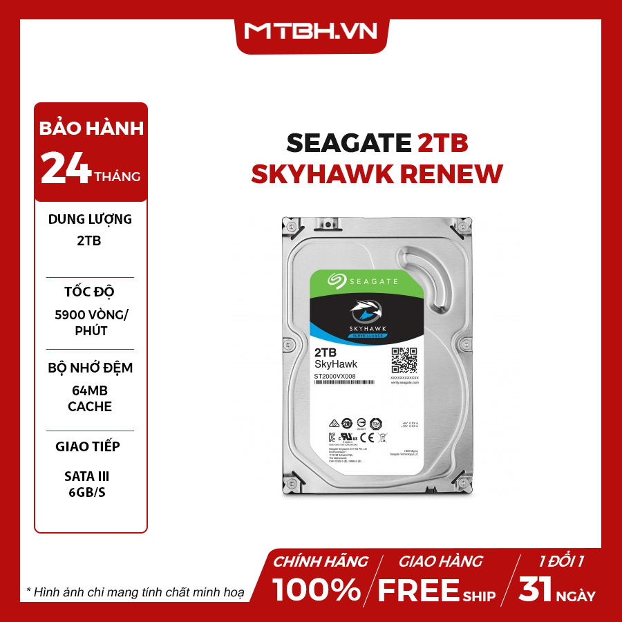 Giới thiệu sản phẩm Ổ cứng HDD Desktop 2TB Seagate Skyhawk (Chuyên Camera)