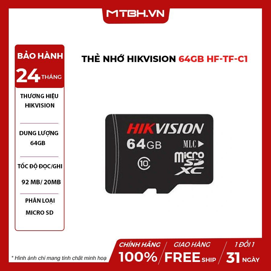 Thông số kỹ thuật thẻ nhớ Micro SD 64Gb HIKVISION HS-TF-C1