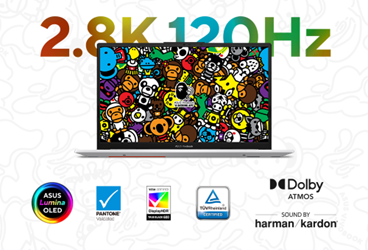 ASUS Vivobook S 15 OLED BAPE Edition là lựa chọn hàng đầu cho những ai thích phát trực tuyến trên Netflix, YouTube hoặc lướt mạng xã hội. Tự hào với màn hình Lumina OLED tỉ lệ 16:9 độ phân giải 2.8K cùng tần số quét 120Hz siêu mượt mang đến trải nghiệm xem đắm chìm với màn hình góc nhìn rộng cùng độ sáng tối đa 500 nit và gam màu 100% DCI-P3. Cho dù là làm việc hay giải trí, chiếc laptop này đều đáp ứng toàn diện nhu cầu của bạn.