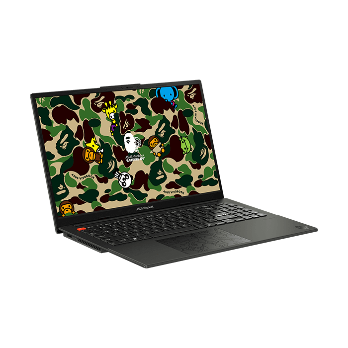 Trải nghiệm sự kết hợp đột phá giữa thời trang đường phố và công nghệ với ASUS Vivobook S 15 OLED BAPE Edition. Sự hợp tác hoành tráng của ASUS với thương hiệu thời trang đường phố nổi tiếng - A BATHING APE® (BAPE®). Hình in camo và BABY MILO® đặc biệt mang tính biểu tượng được tạo riêng cho sự kết hợp lần này, không chỉ xuất hiện trên laptop mà còn trên cả các phụ kiện thời trang khác như túi đựng, mô hình và chuột. Phong cách năng động của Vivobook hòa mình cùng thiết kế đặc trưng của BAPE® mang đến hành trình khám phá thế giới mới đầy ấn tượng.
