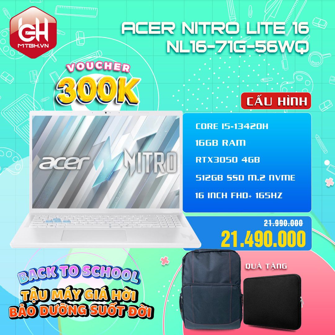 | Màn hình | 16" FHD+ (1920 x 1200) IPS 165Hz NTSC 45%, 300nits, Acer ComfyView™ LED-backlit TFT LCD Wide viewing angle up to 170 degree |