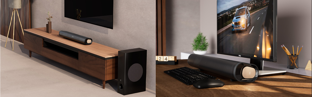 Creative Stage Pro sở hữu thiết kế soundbar nhỏ gọn cùng loa subwoofer riêng biệt, dễ dàng bố trí dưới TV, trên bàn máy tính hay trong phòng khách. Vỏ ngoài màu đen sang trọng, đường nét tối giản giúp tôn lên vẻ hiện đại của mọi không gian nội thất.