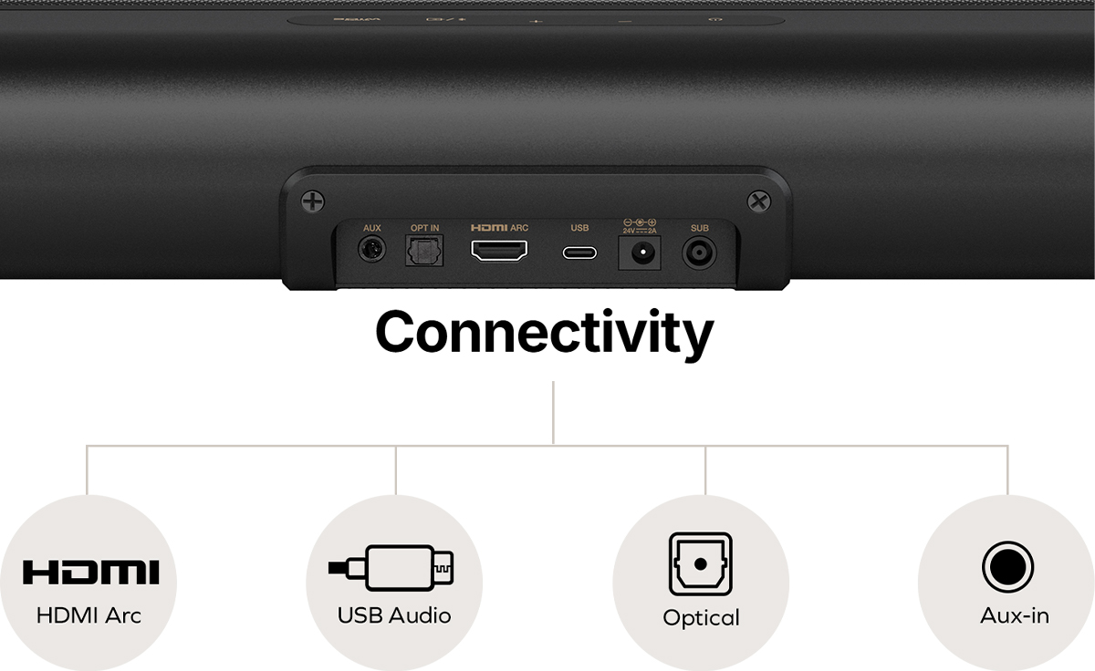 | Kết nối | HDMI 2.0 (ARC), Bluetooth® 5.3, USB Audio |