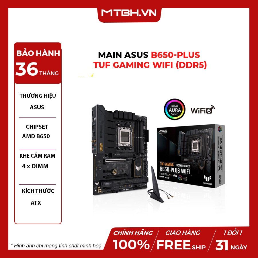 ASUS TUF GAMING B650-PLUS WIFI (DDR5) là dòng mainboard mới thuộc series TUF đến từ ASUS. Theo thông tin từ hãng đây sẽ là dòng main máy tính B650 giúp tối ưu hoá toàn bộ sức mạnh của bộ vi xử lý AMD Ryzen 7000-series.
