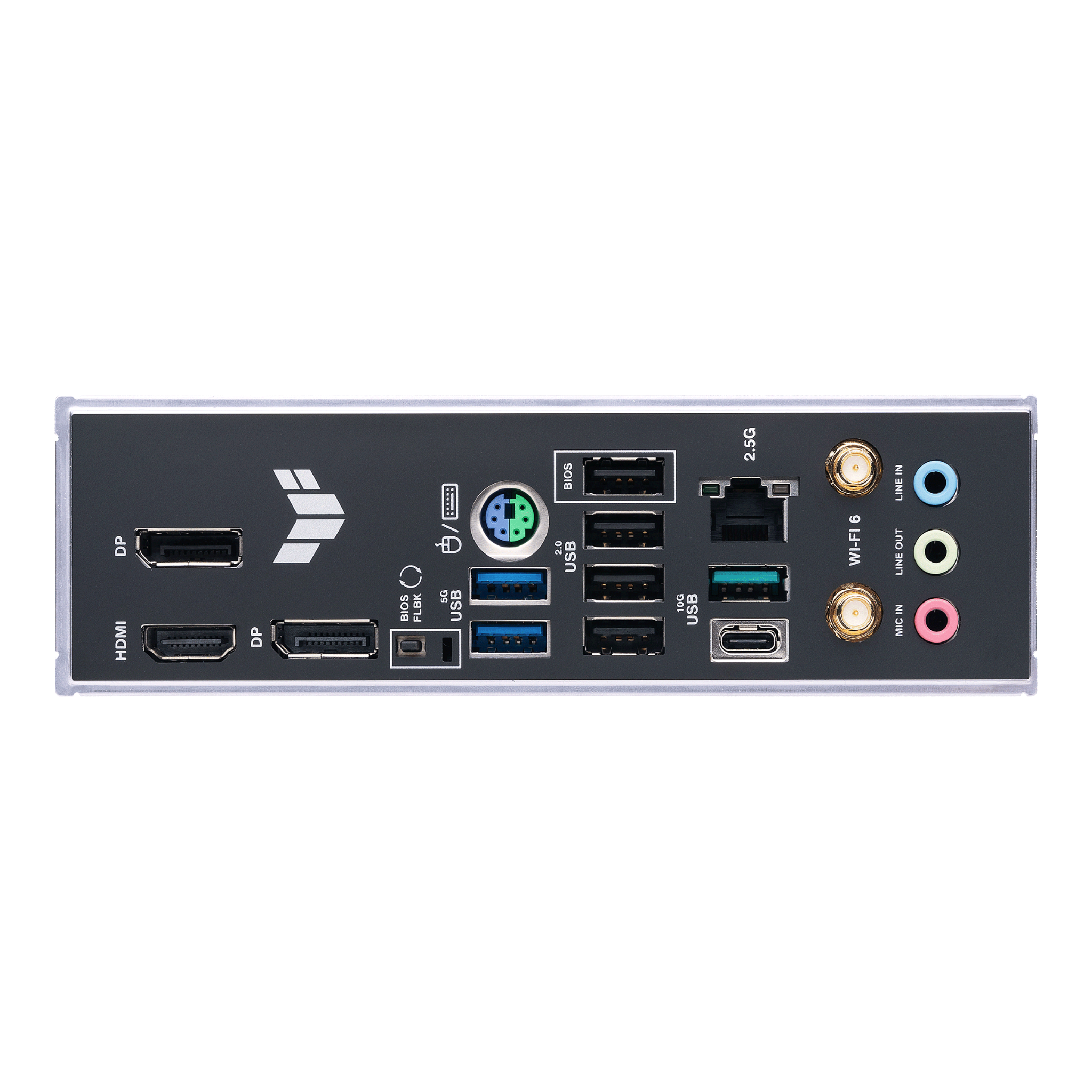 Cổng kết nối (Back Panel) | 2 x USB 3.2 Gen 2 (10G) ports (1 x Type-A + 1 x USB Type-C®) 2 x USB 3.2 Gen 1 (5G) ports (2 x Type-A) 4 x USB 2.0 ports (4 x Type-A) 2 x DisplayPort 1 x HDMITM port 1 x Wi-Fi Module 1 x Realtek 2.5Gb Ethernet port 3 x Audio jacks 1 x BIOS FlashBack™ button 1 x PS/2 Keyboard/Mouse combo port |