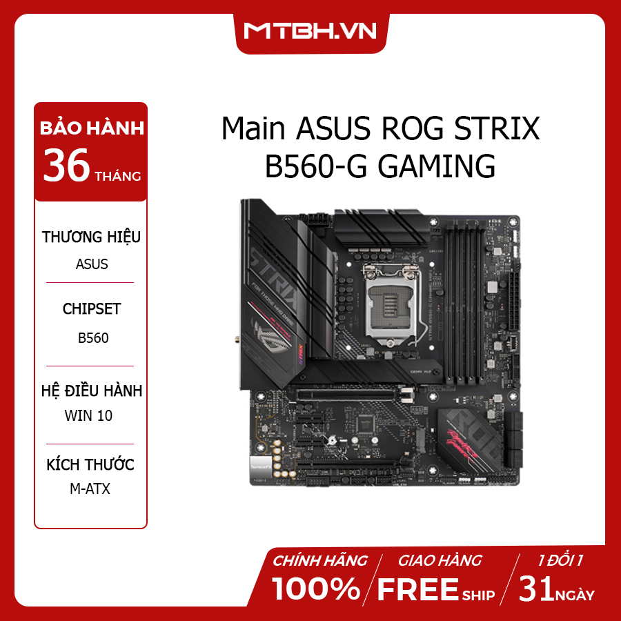 Mainboard ASUS ROG STRIX B560-G GAMING là bo mạch chủ tầm trung của Asus, sử dụng chipset B560 mới nhất, hỗ trợ CPU i3, i5 và i7 socket LGA 1200 (Thế hệ Intel Core i 10 và 11).