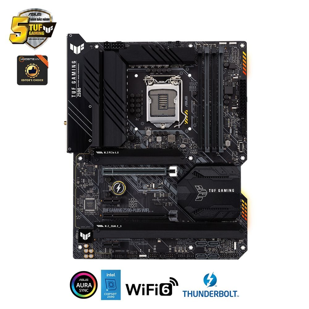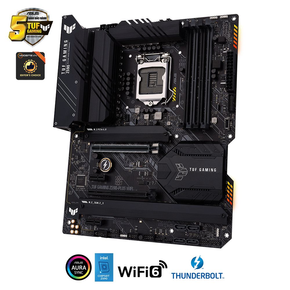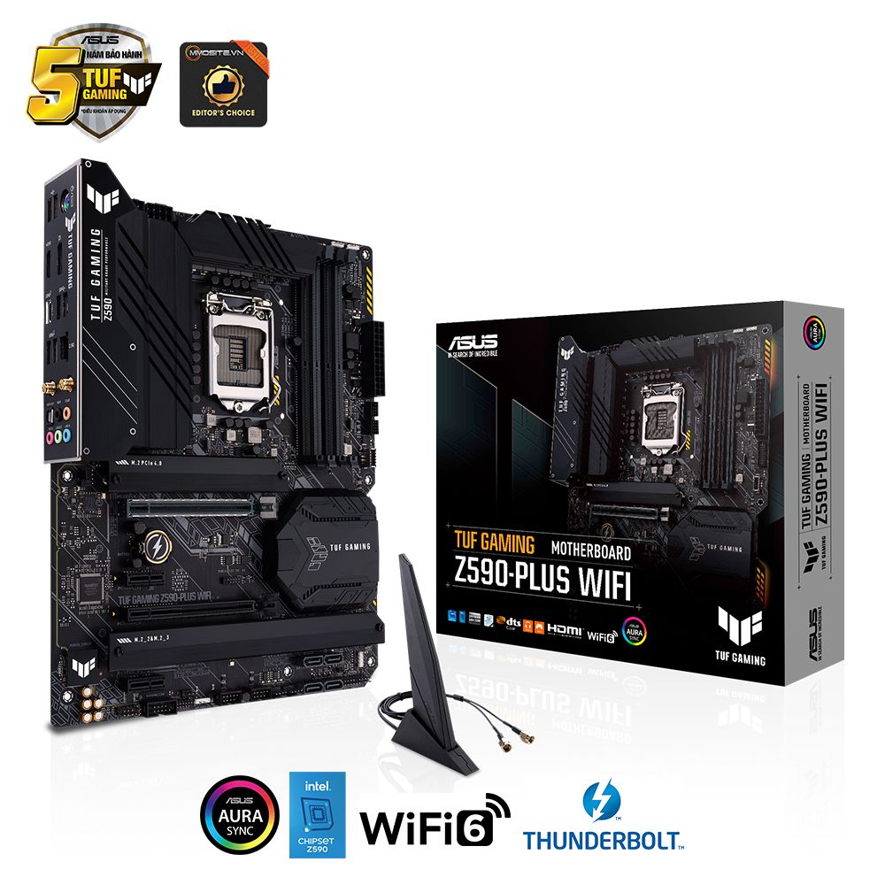 Mainboard ASUS TUF GAMING Z590-PLUS WIFI - là bo mạch chủ sử dụng chipset Z590 của Intel thuộc phân khúc tầm trung của Asus.Bo mạch chủ này sử dụng socket LGA 1200 có thể chạy được CPU Intel Core thế hệ 10 & 11.