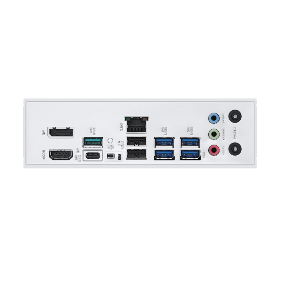 Cổng kết nối (Back Panel) | 1 x USB 20Gbps port (1 x USB Type-C with DP Alt mode) 1x USB 10Gbps port (1 x Type-A) 4 x USB 5Gbps ports (4 x Type-A) 2 x USB 2.0 ports (2 x Type-A) 1 x DisplayPort 1 x HDMI port 1 x Wi-Fi module 1 x Realtek 2.5Gb Ethernet 3 x Audio jacks 1 x BIOS FlashBack button |