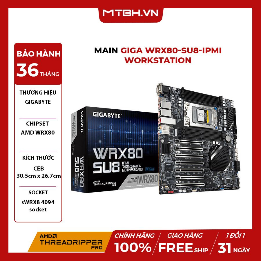 CPU hỗ trợ | Ryzen™ Threadripper™ PRO 3000WX (up to 64C) Single sWRX8 4094 socket; CPU TDP supports up to 280W |