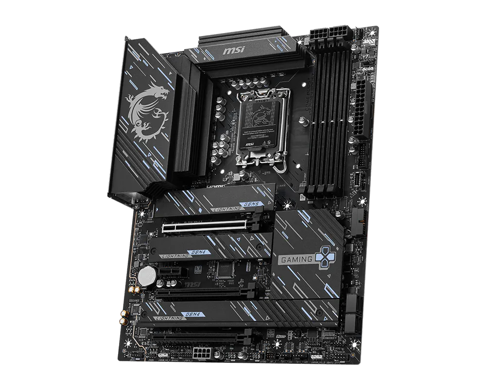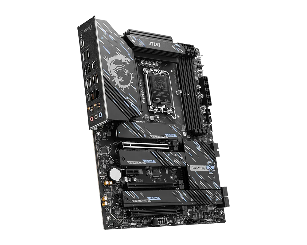 MSI Z890 GAMING PLUS WIFI được trang bị 3 khe PCI-E x16 và 1 khe PCI-E x1, giúp người dùng dễ dàng mở rộng hệ thống với các thiết bị ngoại vi như card đồ họa và ổ cứng SSD. PCIe 5.0 slot và 4 khe M.2 với Lightning Gen 5 mang lại tốc độ truyền tải dữ liệu cực nhanh, giảm thời gian tải game và cải thiện hiệu suất hệ thống.