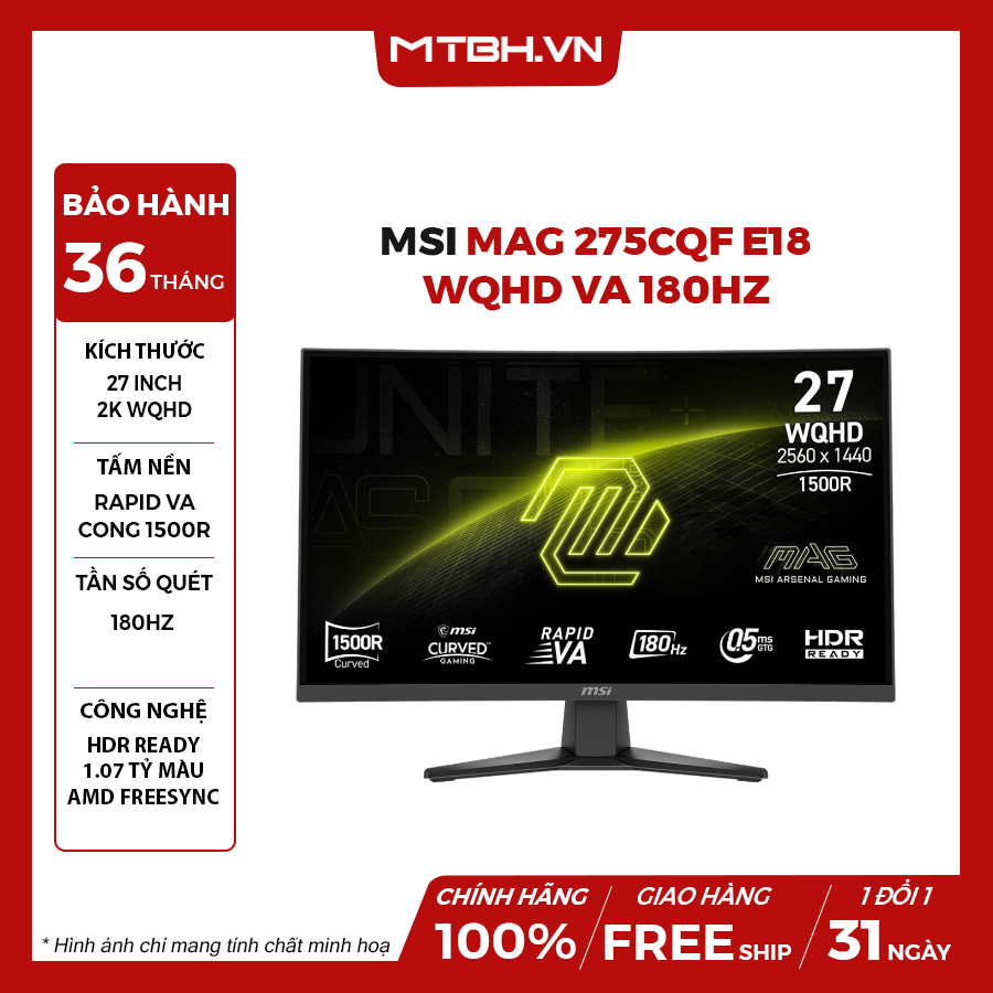 MSI MAG 275CQF E18 – Màn hình cong WQHD 180Hz dành cho game thủ cần sức mạnh thực sự