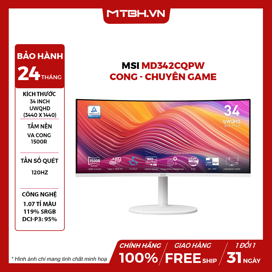 Màn hình MSI Modern MD342CQPW kết hợp hoàn hảo giữa thiết kế tinh tế và hiệu suất mạnh mẽ, dành cho những ai đề cao cả thẩm mỹ lẫn tính năng. Với các đường cong thanh thoát và hiển thị rực rỡ, nó mang đến trải nghiệm hình ảnh tuyệt vời, là sự lựa chọn lý tưởng cho các công việc trong studio và sáng tạo nội dung truyền thông.