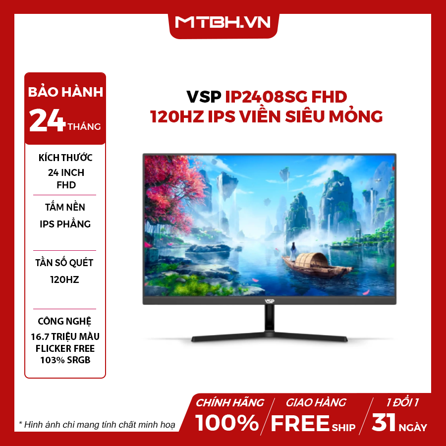 VSP IP2408SG được trang bị tần số quét 120Hz, mang lại trải nghiệm hiển thị mượt mà hơn đáng kể so với màn hình 60Hz thông thường. Khi chơi game hoặc cuộn nội dung, các chuyển động được thể hiện liền mạch và dễ theo dõi hơn.