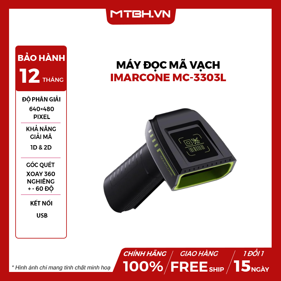 Máy đọc mã vạch iMarcone MC-3303L là thiết bị quét chuyên nghiệp hỗ trợ cả mã vạch 1D và 2D, với cảm biến CMOS độ phân giải 640×480 cho khả năng đọc nhanh, chính xác. Thiết kế gọn nhẹ, độ bền cao, phù hợp cho nhiều môi trường làm việc từ cửa hàng bán lẻ, kho hàng đến sản xuất.