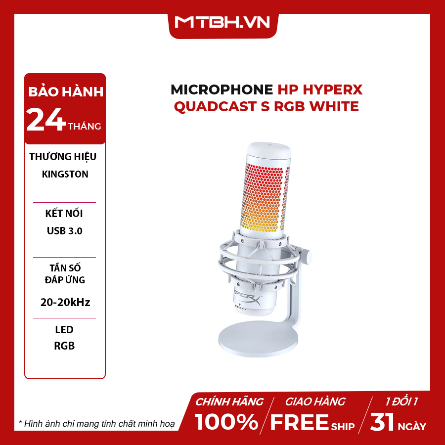 Thiết bị Stream Microphone HyperX QuadCast S RGB Tích hợp đế chống sốc chống rung Micro được cố định và giảm bớt những âm thanh ầm ầm cùng va đập ngoài ý muốn bằng những dây treo đàn hồi | ![]() |