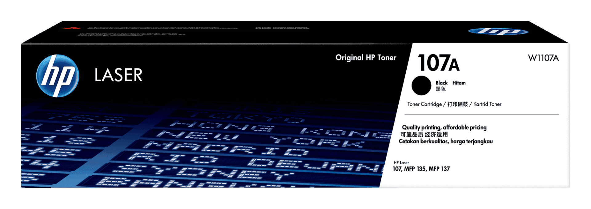 Hộp mực in laser HP 107A Black (W1107A) cho khối lượng in tiêu chuẩn ở mức giá hợp lí. Mực in HP chính hãng có thể sử dụng được gần như 100% lượng mực trong hộp nên kéo dài thời gian sử dụng hơn hẳn so với mực in tương thích (tối đa 90% lượng mực in).