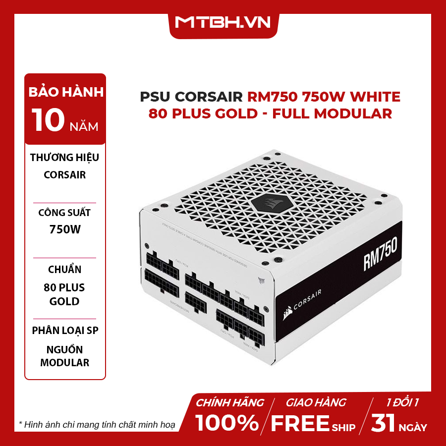 Corsair RM750 White 2021 80 PLUS Gold cung cấp bảo hành mười năm cho tất cả các bộ nguồn của Dòng RM; đảm bảo chất lượng và độ ổn định của hệ thống.