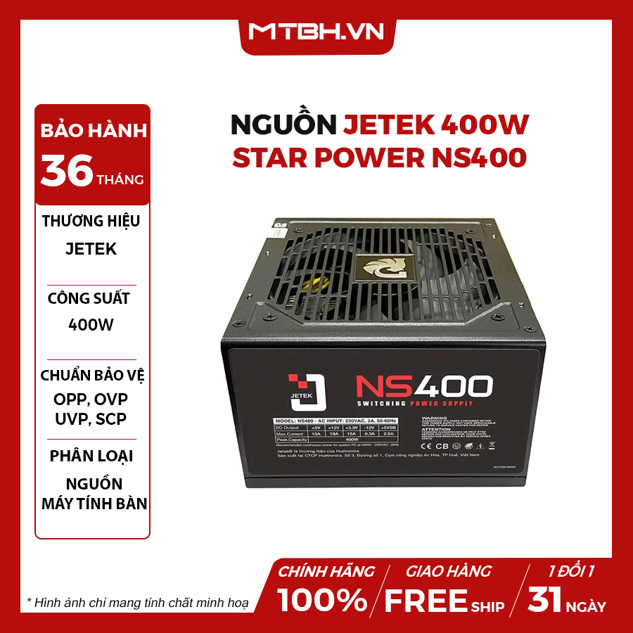 Nguồn Jetek STAR Power NS400 400W: Hiệu Năng Ổn Định, Giá Cả Hợp Lý, Lý Tưởng Cho Máy Tính Văn Phòng