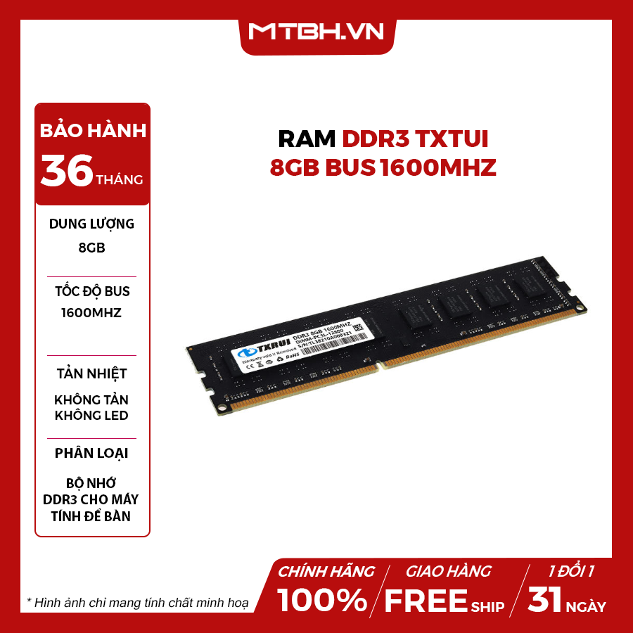 Chủng loại: RAM TXRUI 8GB DDR3 Bus 1600Mhz