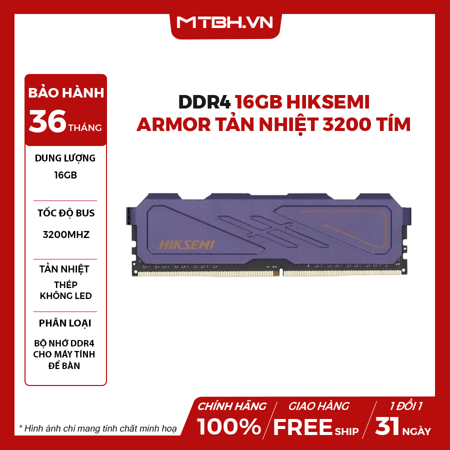 RAM là một trong những linh kiện quan trọng quyết định hiệu suất tổng thể của một hệ thống máy tính. Với nhu cầu ngày càng cao về xử lý đa nhiệm, chơi game và làm việc chuyên nghiệp, RAM HIKSEMI Armor 16GB DDR4 3200MHz mang đến giải pháp tối ưu với tốc độ cao, độ bền tốt và khả năng tản nhiệt hiệu quả. Đây là lựa chọn lý tưởng cho người dùng muốn nâng cấp máy tính với mức giá hợp lý nhưng vẫn đảm bảo hiệu suất mạnh mẽ.