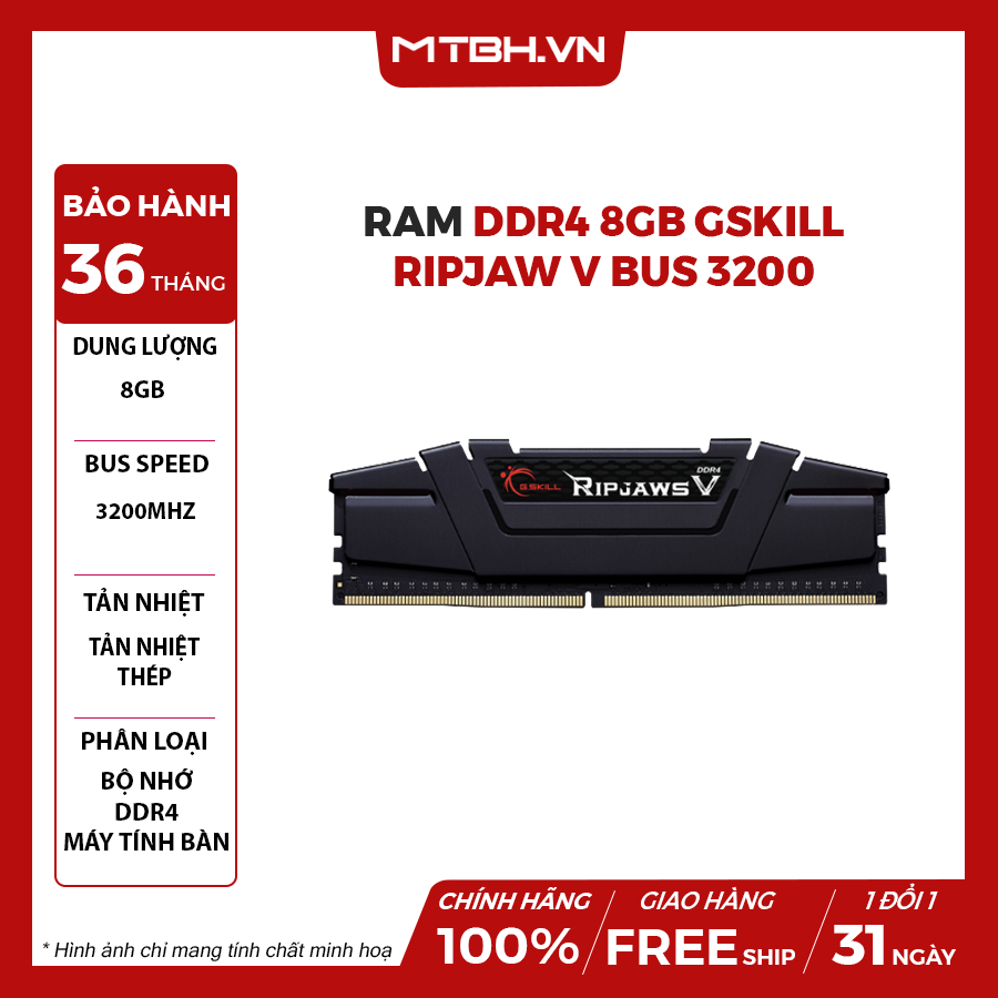 | Tên sản phẩm | RAM DDR4 G.Skill Ripjaws V 1x8G 3200 (F4-3200C16S-8GVKB) |