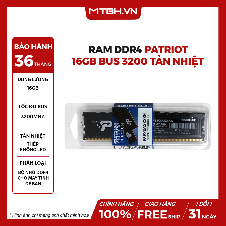 Với chế độ bảo hành lên đến 3 năm, dòng sản phẩm Signature Line Premium DDR4 của Patriot là lựa chọn hoàn hảo cho bất cứ hệ thống PC lăp mới hay nâng cấp để đạt được hiệu năng xử lý nhanh hơn.