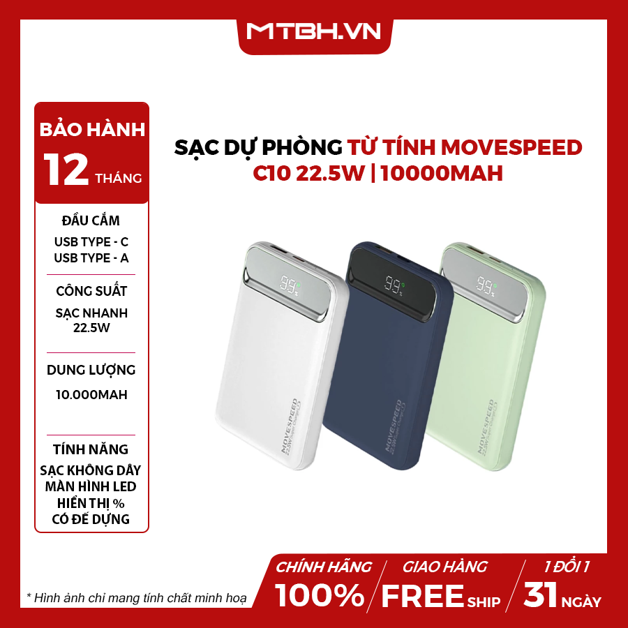 Thông số tiêu chuẩn thực tế là 10.000 mAh với dung lượng lớn, dễ dàng đáp ứng nhu cầu sử dụng điện bổ sung hàng ngày khi ra ngoài.