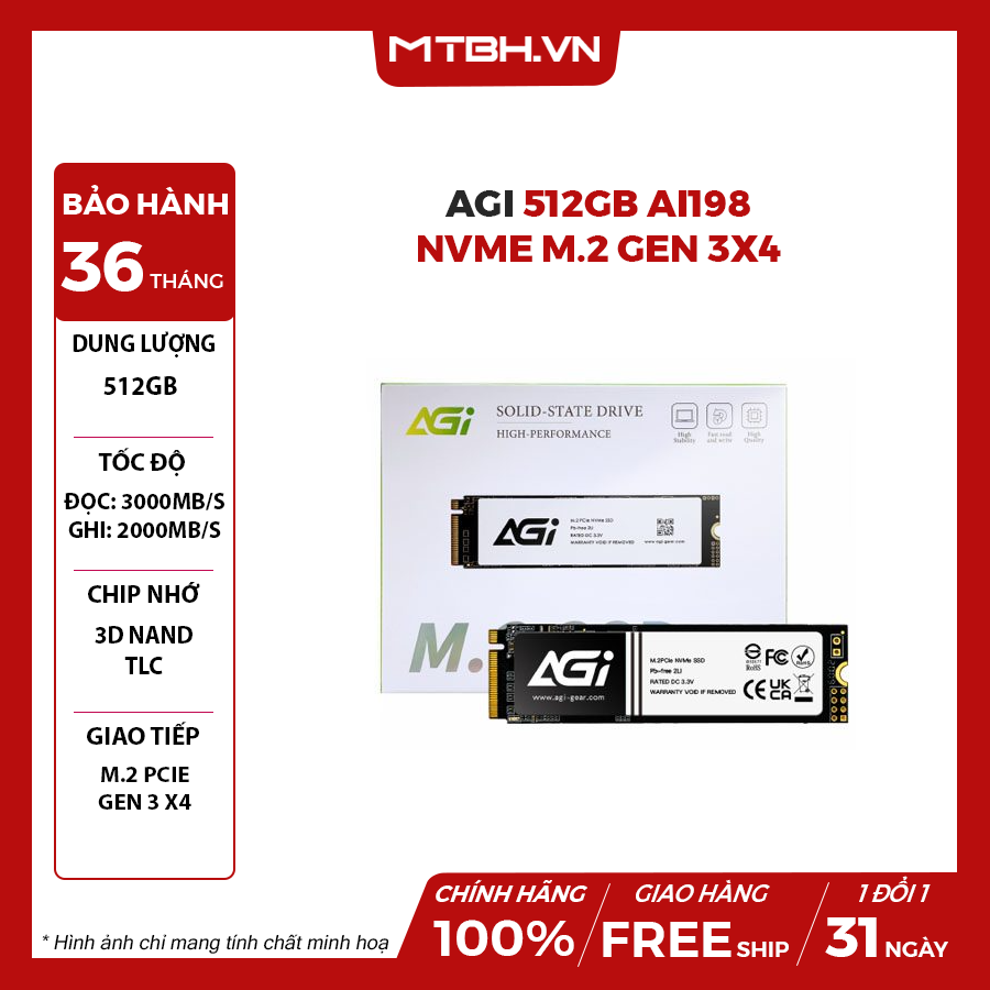 Ổ cứng SSD AGI 512GB M.2 NVME PCIe Gen 3×4 có tốc độ đọc ghi đáng kinh ngạc hỗ trợ người dùng thực hiện các tác vụ nhanh nhất có hiệu quả cao. Đây là một giải pháp để nâng cấp bộ nhớ trong PC khi ổ cứng có dung lượng thấp.
