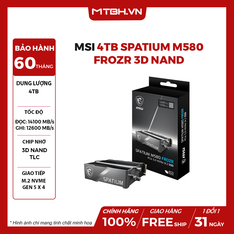 Ổ cứng SSD MSI SPATIUM M580 FROZR 4TB là lựa chọn hoàn hảo cho những ai đang tìm kiếm một giải pháp lưu trữ tốc độ cao, bền bỉ và an toàn. Với thiết kế tản nhiệt FROZR độc quyền, hiệu năng ấn tượng và độ bền cao, ổ cứng này sẽ giúp nâng tầm trải nghiệm máy tính của bạn lên một tầm cao mới.
