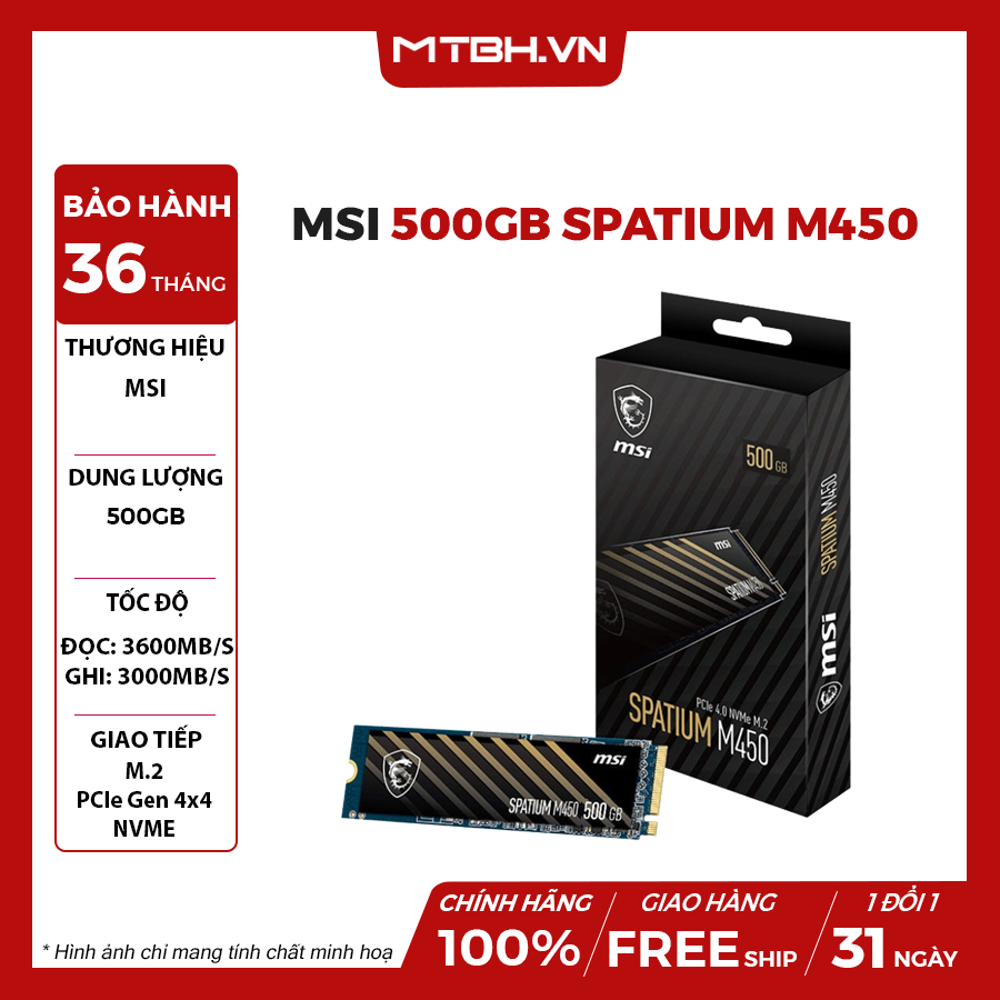 SSD MSI SPATIUM M450 500GB M.2 2280 NVME PCIE Gen4X4 (3600/2300 MB/s)