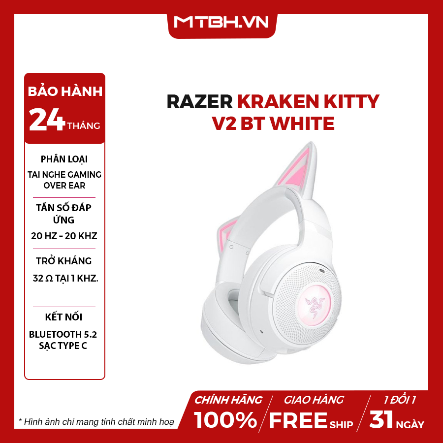 Với dải tần đáp ứng từ 20 Hz - 20 kHz, tai nghe tái tạo đầy đủ các dải âm, từ âm trầm sâu lắng đến âm trung rõ ràng. Đặc biệt, tai nghe hỗ trợ công nghệ Surround Sound trên Windows 10 64-bit hoặc cao hơn. Điều này mang lại lợi thế lớn trong gaming hay trong trải nghiệm xem phim, giúp bạn chìm đắm. Đồng thời, Razer Kraken Kitty V2 BT tích hợp microphone chống ồn dạng Beamforming với khả năng thu âm đa hướng.