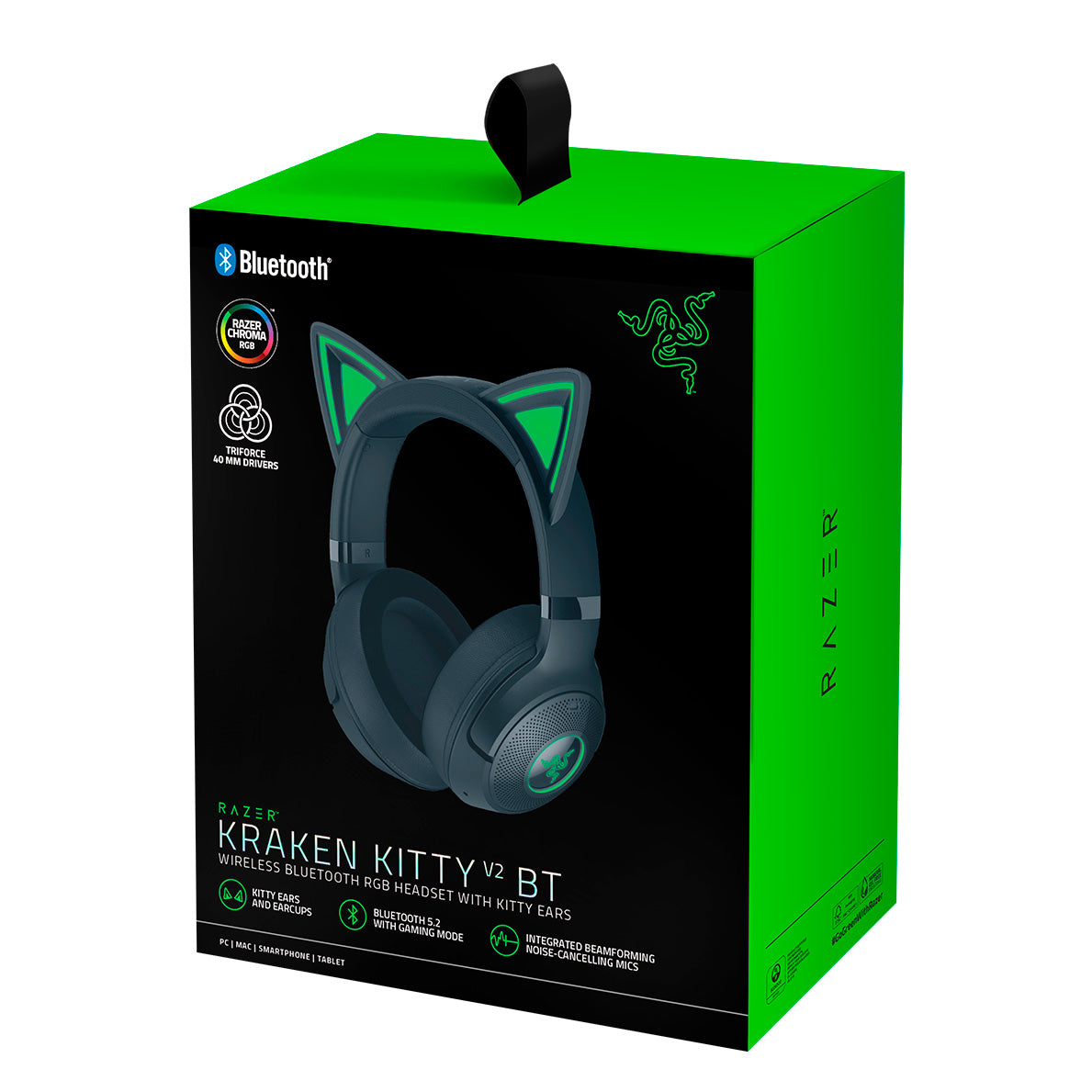 Razer Kraken Kitty V2 BT mang đến sự tự do tuyệt đối với kết nối không dây Bluetooth 5.2. Chuẩn Bluetooth tiên tiến này đảm bảo độ trễ thấp, mang lại trải nghiệm âm thanh mượt mà và đồng bộ hoàn hảo với hình ảnh, dù bạn đang chơi game, xem phim hay nghe nhạc. Khả năng kết nối ổn định trong phạm vi rộng giúp bạn thoải mái di chuyển trong phòng mà không bị gián đoạn tín hiệu.