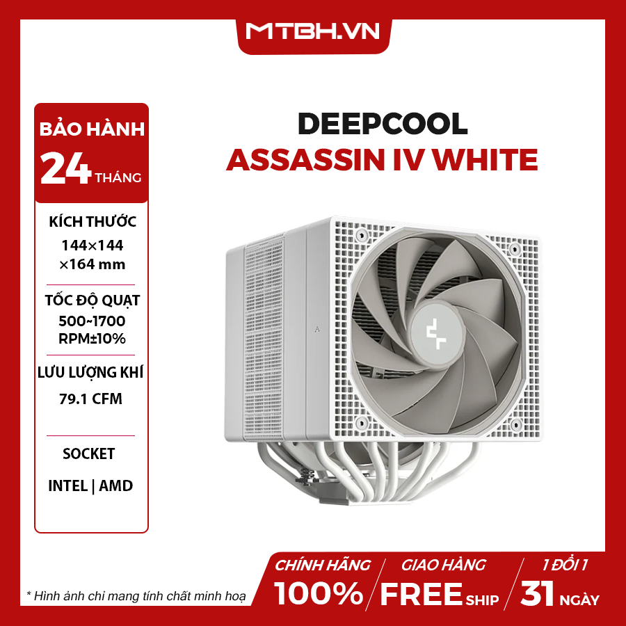ASSASSIN IV WH có tản nhiệt tháp kép toàn màu trắng, thiết kế hoa văn “Chessboard” mang tính biểu tượng đã tối ưu hóa luồng khí để có hiệu suất làm mát hiệu quả hơn với vẻ ngoài dễ nhận biết